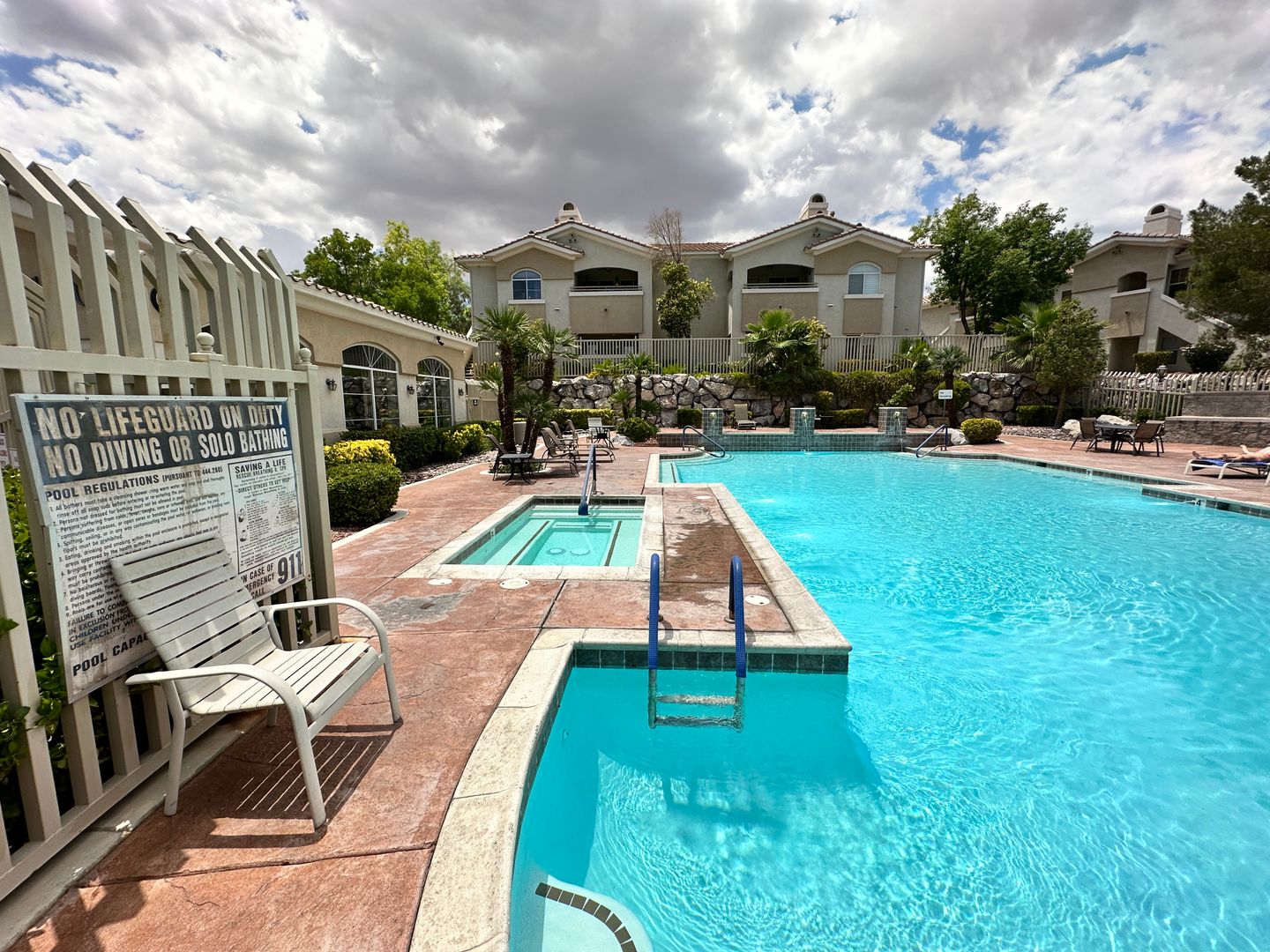 Stop scrolling, you just found the one. This Summerlin 2-bed + den, 2-bath corner condo brings the fun with an airy open layout, loads of natural light, and a kitchen so sleek it makes takeout jealous. Stainless steel appliances? Check. Walk-in closets in both bedrooms? Double check. Private balcony? Now we’re just showing off. The primary suite gives spa vibes with a private bath and balcony escape. No carpet (because who has time for that), a full-size washer and dryer, and your very own garage seal the deal. The perks don’t stop there. This gated community is stacked with a resort-style pool, spa, clubhouse, gym, pet parks, and shady green space for lazy afternoons. Close to everything you want and ready when you are. Don’t let someone else snag it first.